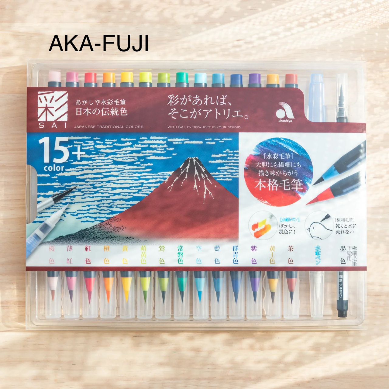 آکاشیا(Akashiya) یک برند ژاپنی معتبر و تخصصی در حوزه ابزارهای طراحی و خوشنویسی است. قلم مو رنگ آمیزی 15 رنگ SAI آکاشیا یکی از محصولات باکیفیت و محبوب در میان هنرمندان، طراحان، علاقه مندان به خوشنویسی مدرن و تصویرسازی است. این محصول با الهام از هنر سنتی ژاپن طراحی شده و ترکیبی از رنگهای زنده، ملایم و کاربردی را در قالبی حرفه ای ارائه می دهد. هر بسته شامل 15 رنگ متنوع آبرنگی به همراه: